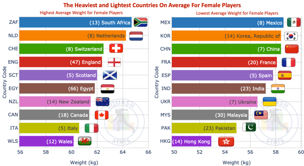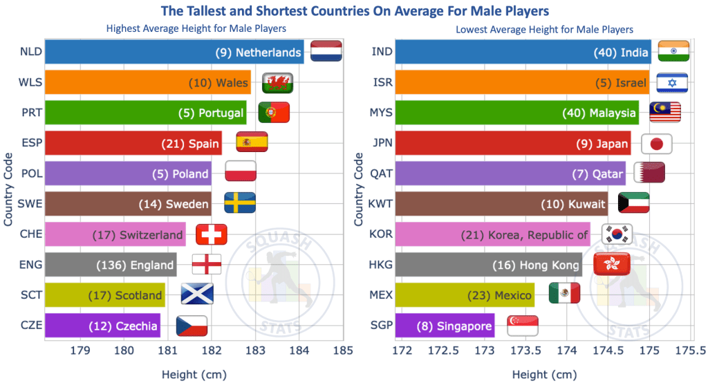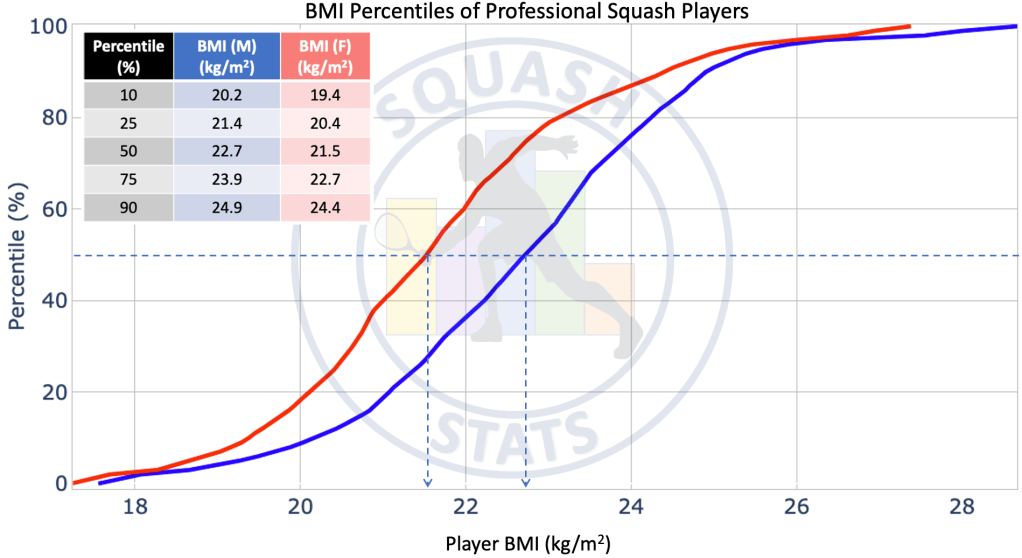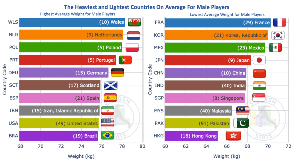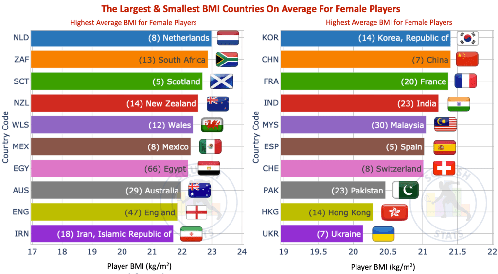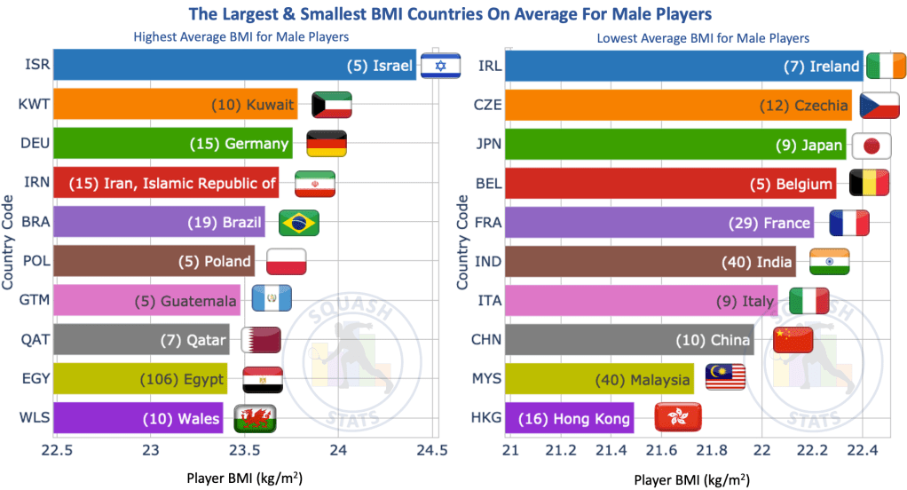 - The Welsh are among the tallest and heaviest male squash players. but their average BMI is considerably low in the top ten.